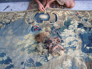 I spent a couple of hours this Saturday afternoon inspecting the tapestry, taking pictures and videos. I am posting few pictures of the repair here. I will have to post the video later in another post after it is edited.