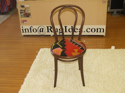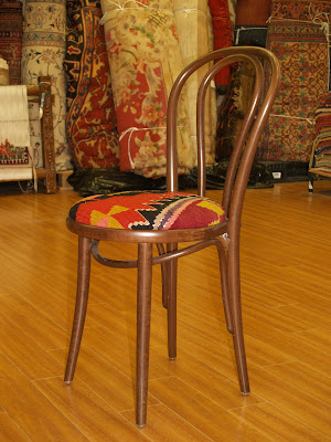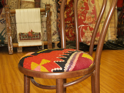 Recently, we have made some Thonet chairs with kilim covers. Michael Thonet invented this type of chair in 1850. Until 1930, more than 50 millions of this chair which is called Thonet #14 chair was sold world wide. We have made and sold few pieces so far to test the market. Our customers loved them. This is a type of cafe chair which is very light but strong.