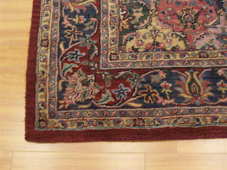 One of our repeat customers came in recently with 8 rugs to be deep cleaned as she was redecorating her house and wanted everything clean, sanitized & deodorized. One on the rugs, however, had lots of foot traffic since it was in her living room. The fringes on both ends had started to disintegrate and made the rug look very worn. Take a look at before pics of the rug below: