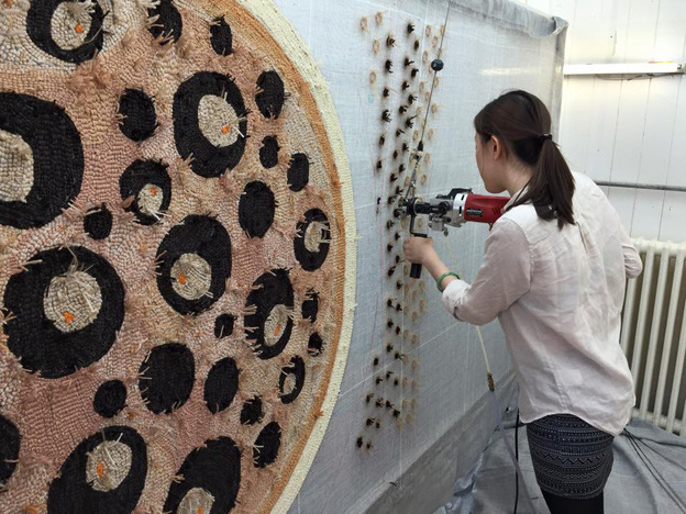 knots on vertical foundation threads called warps. Making a tufted rug takes a fraction of the time to make, and this