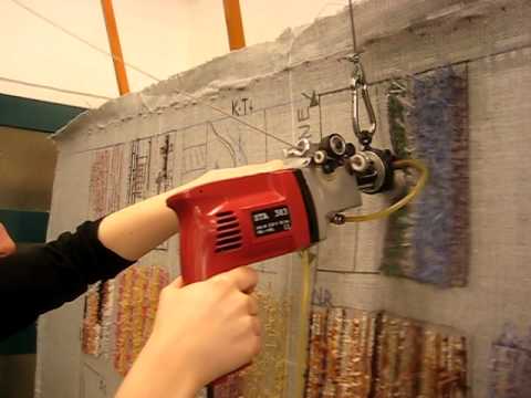 tool called a “tufting gun.” These guns can be hand mechanical or electrical guns. Loops of wool are pushed through a