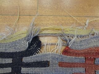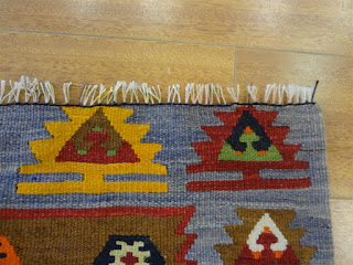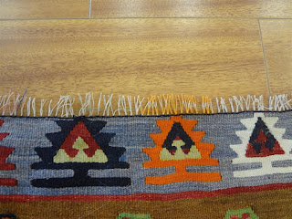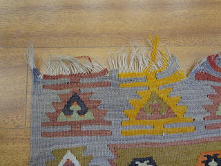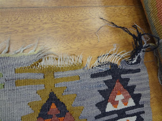 A customer of ours recently brought in a Turkish Kilim of hers to be deep cleaned as it had not been washed in about 2 years. While we were doing our inspection of the kilim, it was immediately noticeable the the ends of the kilim were not secured and unraveling had started to occur. Take a look below: