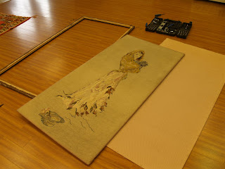 Today we had a customer with a unique job request; her mother made these beautiful three needlepoint tapestries back in the 50’s, which are mounted to aging frames, and now the customer is trying to get them thoroughly cleaned so they can be reframed with glass fronts to display them. Couple of these needle points have cat scratches which should be restored and repaired.