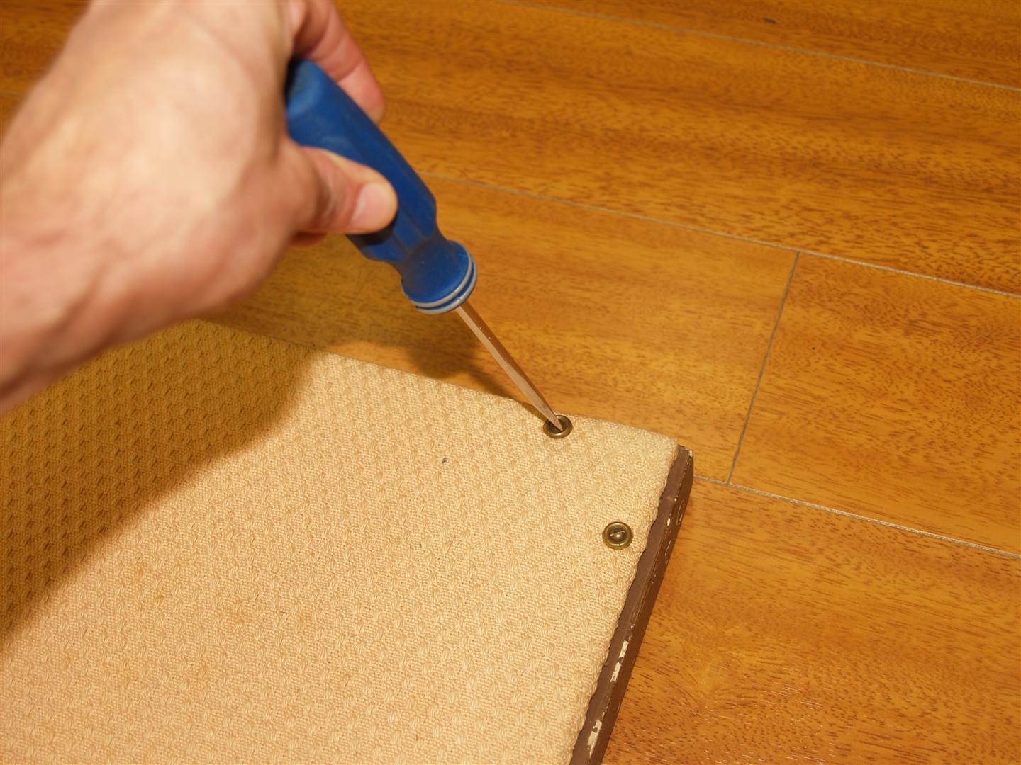 At Rug Ideas we handle all types of cleaning, including tapestries. We carefully dismantled the tapestries from the frame, taking great care not to cause any damage to the half century old tapestry. The first layer was mounting screws holding the backing to the tapestry and frame; the 2nd layer was a multitude of nails holding just the tapestry to the frame.Great care needs to be taken during this process to avoid damage to the fragile needlepoint tapestry.