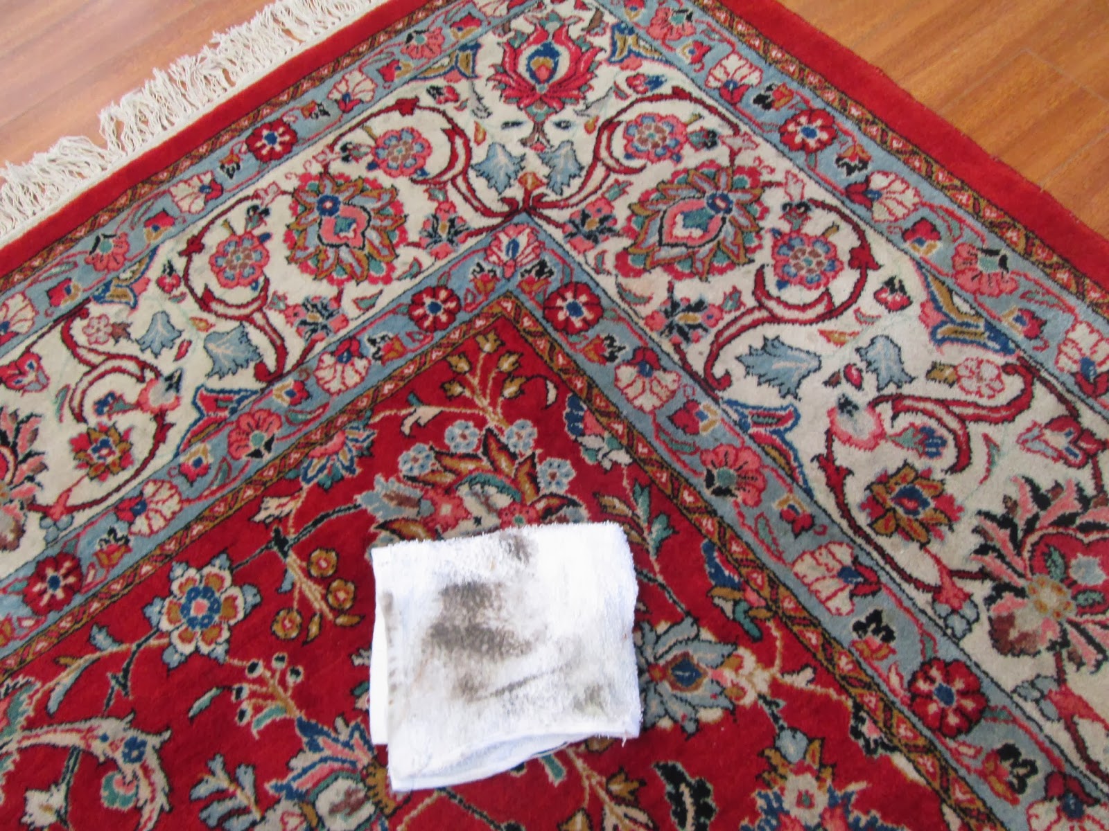 Sometimes our customers bring in rugs to sell, to appraise, or to repair. In many cases these rugs are dirty. But since customers do not see the dust, or vacuum their rugs once in a while, they think their rugs are not dirty. Until we lightly vacuum their rugs our way or grab a wet white towel and rub it on their rugs. Then they become embarrassed and say yes, this rug is dirty. Let’s clean it!